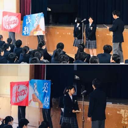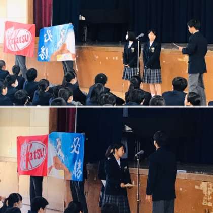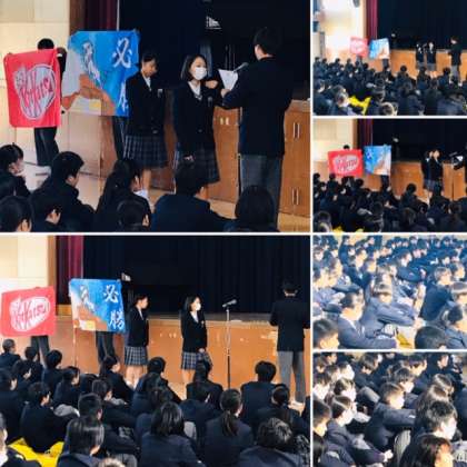 また、文化祭で「全校生徒に投票」してもらった「体育大会」の『学級旗』コンテストの表彰を「体育委員会」からしてもらいました。