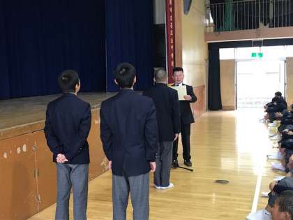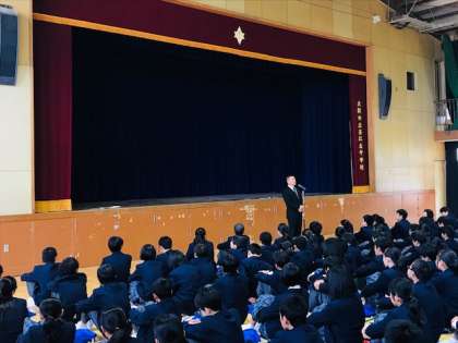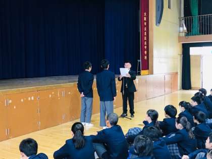 全校集会では、学校の今の課題についてみんなに考えてもらいました。