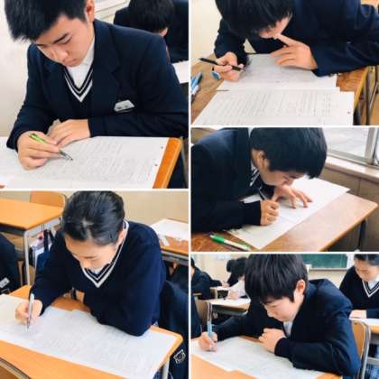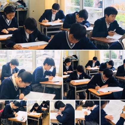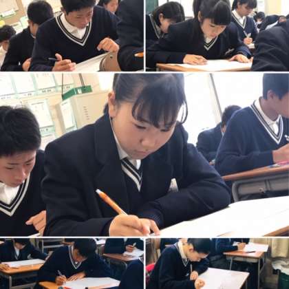 本日から3日間つづく、「期末テスト」が始まりました。3年生は、いつも以上に引き締まった表情で、テスト問題の回答に取り組んでいます。