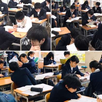 期末テスト前の「朝学活」では、ものすごい勢いで勉強に取り組んでいます。