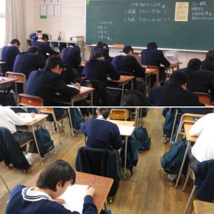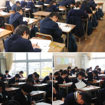 期末テストの2日目がスタートしています! 今日は12月下旬並みの気温で肌寒いですが、生徒のみなさんは1つでも多く正解を導き出そうと、熱心にがんばっています!!