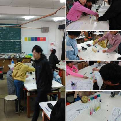 テーマはもちろん、「魚を科学する」、「光の音を科学する」、「水溶液を科学する」です。中学校理科のおもしろさを体験してもらいました。