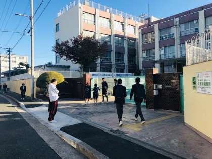正門にいる先生に「おはようござます」と元気な一言聞いたら先生たちも安心します。