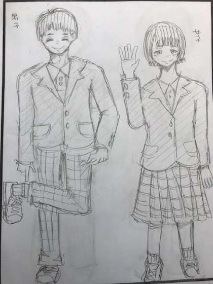 2年生の『美術科』の授業で『生徒手帳』の「挿絵」を描いてもらいました。