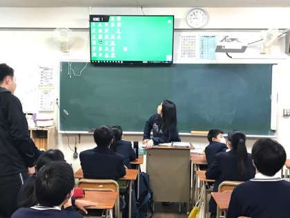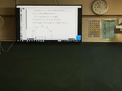 1限目の授業を除くと、60インチの巨大モニターを活用してさっそく授業が展開されていました。