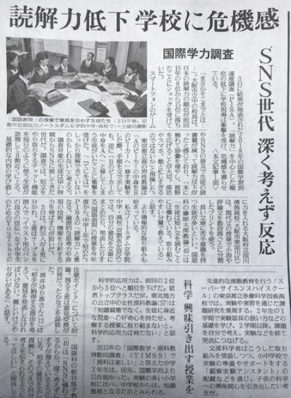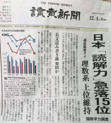 日本「読解力」急落・・・(下)写真記載(読売新聞)(朝日新聞)
