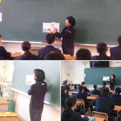 朝の読書タイムのなか、2年生のクラスで、読書ボランティアさんらによる「読み聞かせ」をしていただきました。