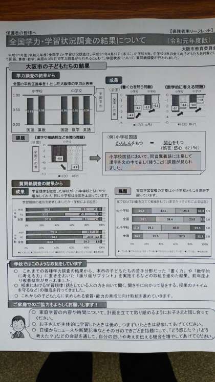 平成31年度(令和元年度)「全国学力・学習状況調査」大阪市の結果