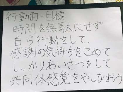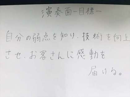 吹奏楽部は「演奏目標」「行動目標」をそれぞれが意識して学校生活を送っています。