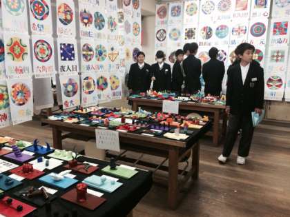 続いて、写真は、同じく教科発表、美術科1年「まんだらデザイン」、2年「立体制作〜する形」、3年「点描画」です。