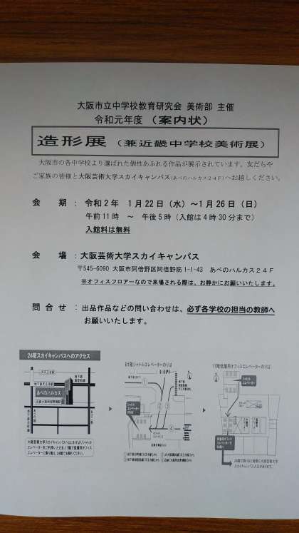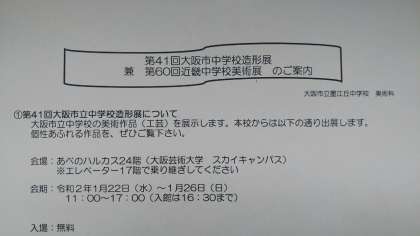 1/22 「第41回大阪市中学校造形展・第60回近畿中学校美術展」のご案内