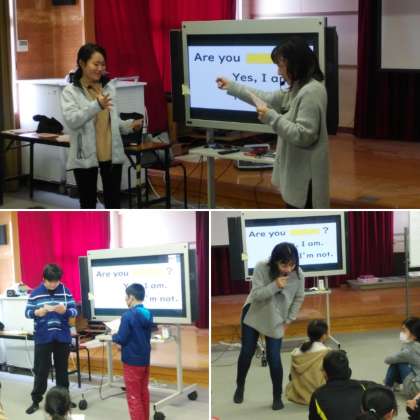 今日も、本校の英語教員と、そのサポートとしての学生ボランティアの2名で、小学校を訪れ、「英語科出前授業」を行いました。