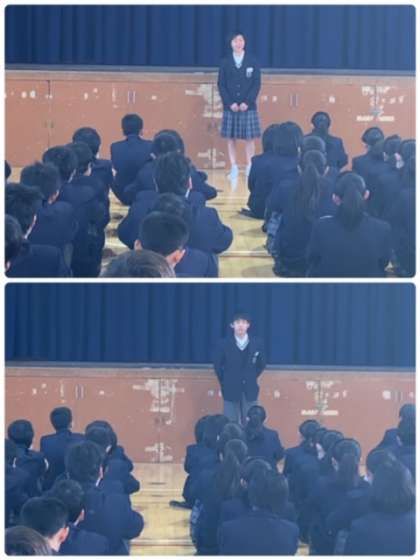 その他、学級代表・副学級代表が毎週交代で話す内容にも、来月行われる駅伝大会や百人一首大会の内容が盛り込まれており、充実した集会になりました。