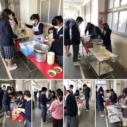 今日も給食当番の人がみんなの分をよそってあげていました。