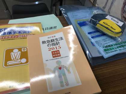 来年度の本校における、土曜日授業を絡めた防災教育に向けて動き出しています。本校では教頭先生だけが取得していますが、「普通救急救命普及員」の資格を得るため、先生たちは3日間の講習会に参加しています。