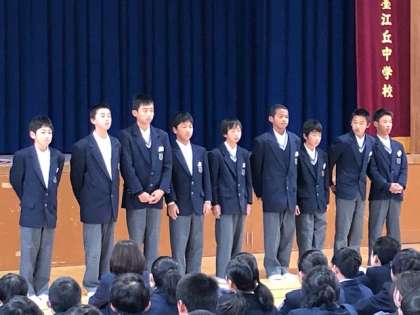 まずは2.8kmを走った男子、女子生徒の区間賞の表彰が行われました。