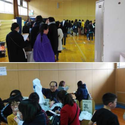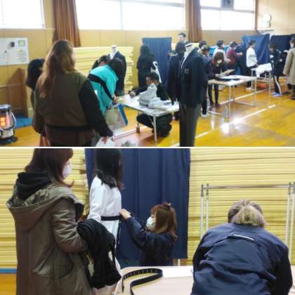 例年は小学校になっています、「標準服・体操服採寸」を、今年度は本校の格技室で行いました。今回は、昨今の状況を鑑み、女子の標準服の選択幅を広げる(写真5枚目)試みをしてみました。