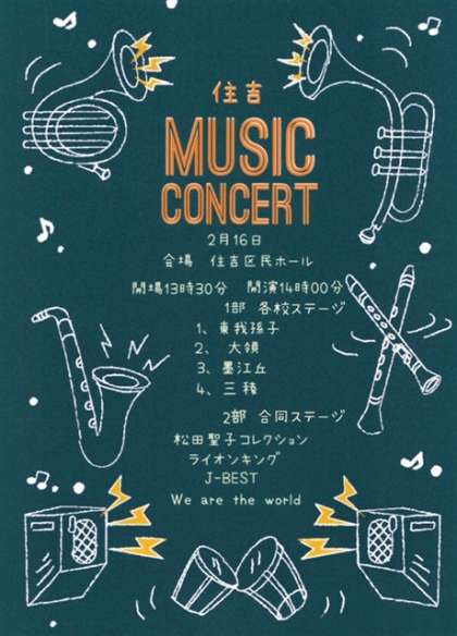 東我孫子中学、大領中学、三稜中学、墨江丘中学、4校の吹奏楽部が出演し、それぞれのステージの後、合同で演奏を行います。