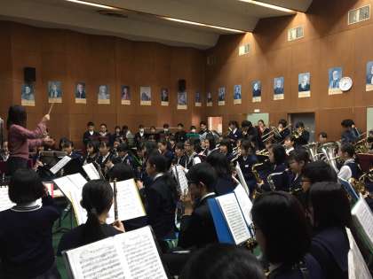 吹奏楽部は、2月16日に行われる住吉コンサートにむけて、合同練習を行いました。