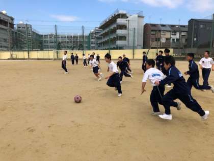 1年生3,4組男子体育の授業ではサッカーをしました。