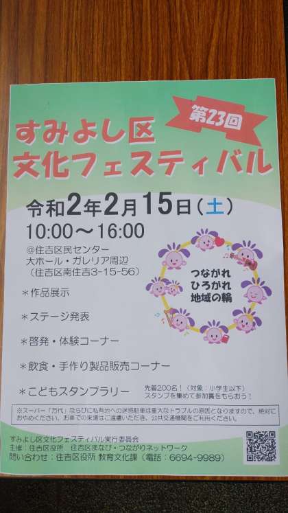 2/14 「第23回 すみよし区文化フェスティバル」(お知らせ)