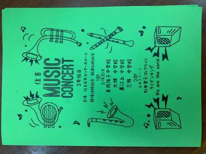 本校吹奏楽部が出演する、「住吉MUSIC CONCERT」が、本日14時より行われます。