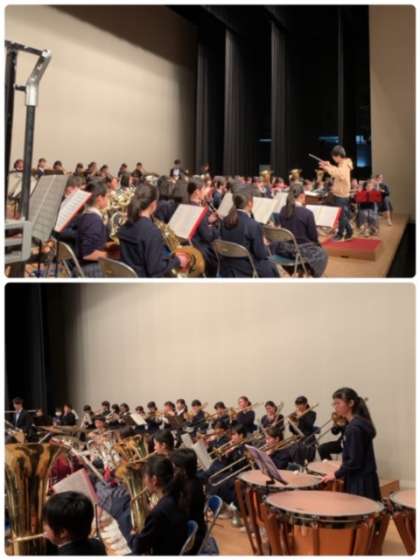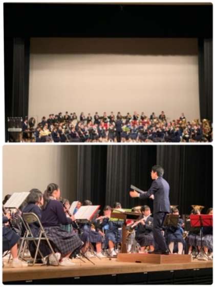 4校合同ステージでは、人があふれそうなぐらい舞台に集合しています。