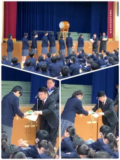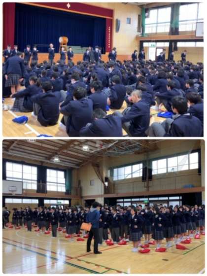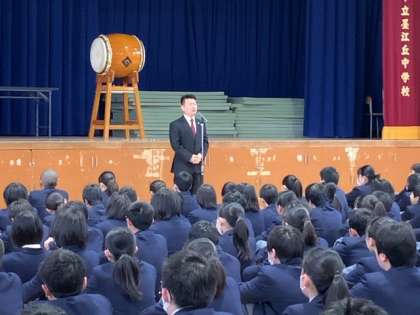 大きな声で声出しの後、校長先生から、オリンピア交流会のお話がありました。