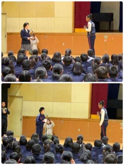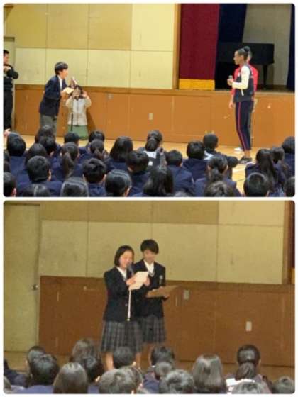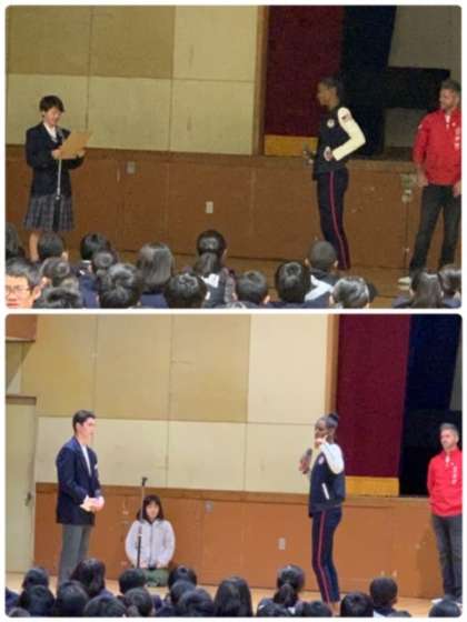 最後に、本校の生徒を代表して、生徒会、有志からの挨拶と、トロッターさんへ質問をさせて頂きました。