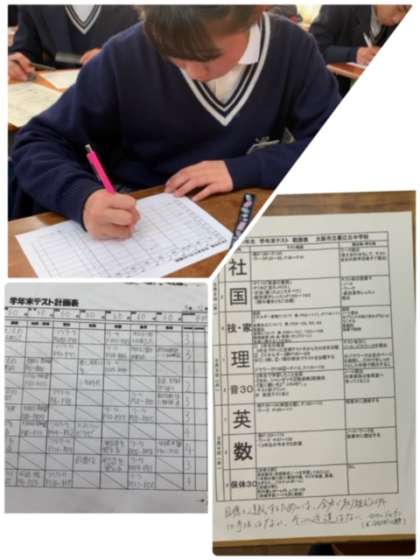 2年生は6時間目に、3/2から行われる学年末テストにむけて、テスト計画表に取り組みました。