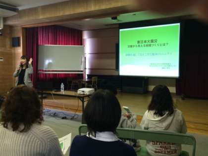 市内の小学校、中学校は、収容避難所となっていますが、実際の災害を通じて何を知るべきか、何を学ぶべきかを事例を通じてお話しいただきました。