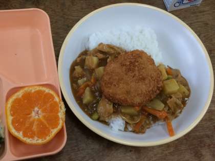 今日、18日の給食には、人気メニュー「チキンカツカレーライス」が登場しました。