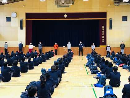 校長先生から今、社会が緊急事態での行動、命の大切さ、そして人間力を高め、今こそ、それぞれの居場所でチカラを発揮して、高められるような工夫をして過ごして欲しいと話がありました。