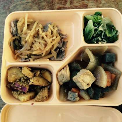副食は、「厚揚げと野菜の煮物」「さつまいものごまみつかけ」「オオサカシロナのじゃこ炒め」でした。