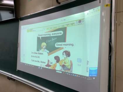 英語で自己紹介をしたり、得意なことや好きなことを言ったりと、とても楽しい授業の様子です。