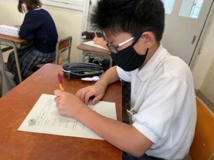 しん・・・とした教室の中、小テストが行われていました。