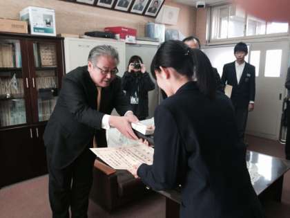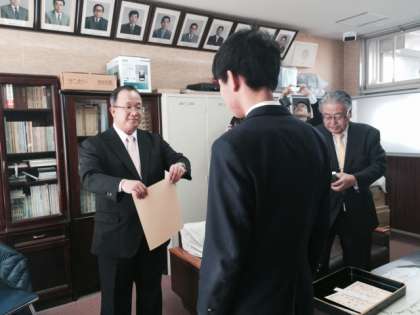 今年は、その中から、2作品が選ばれ、本日、税務署の職員の方から、表彰状が校長室で授与されました。
