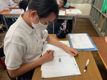 前で黒板に解答を書くというのはとても緊張しますが、さすが2年生。しっかりと自分の答えを書いていました。