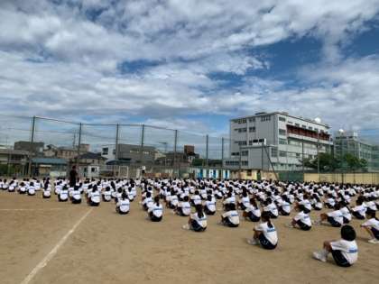 今日は1,2時間目を使って、体育大会の全体練習が行われました。