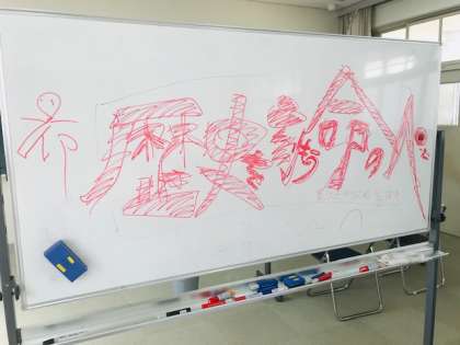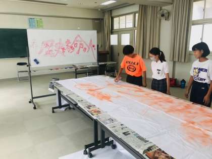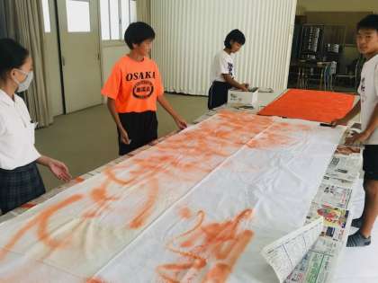 今日も休日の中、生徒会役員が今年のテーマのスローガンの旗を考えてくれています。