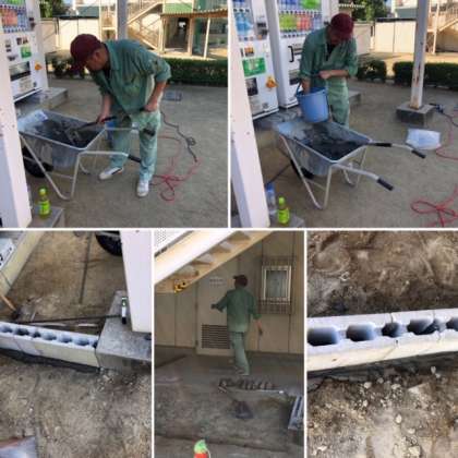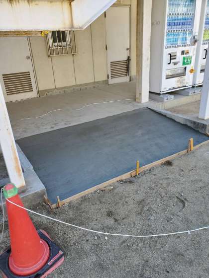 クラブハウス前の自動販売機横に管理作業員さんがスロープを作成してくれています。