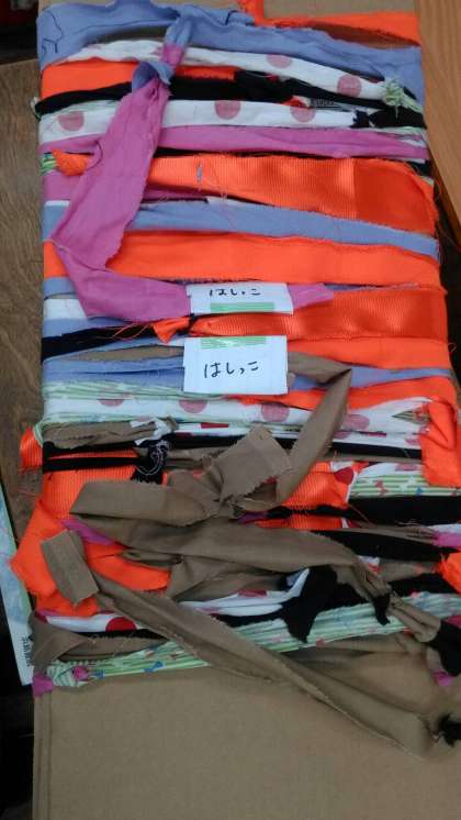 色とりどりの布を切ったりつなぎ合わせたり・・・