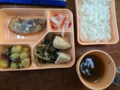 メインは、赤魚の西京焼きで、他には、鶏肉の治部煮風と給食としては、豪華なものでした。