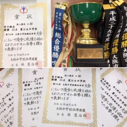 見事、男子総合は大阪府中学校525校の「頂点」になりました。