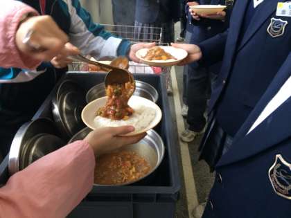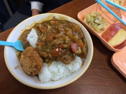 カレーは、廊下が寒いので、熱く、食缶から湯気が立つほどでした。
