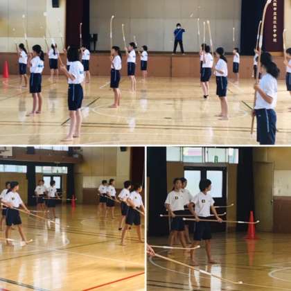 今日は大学のなぎなた部の監督さんも来られ、子どもたちも5回目のなぎなた授業で動きも覚え、リズムもあってきました。