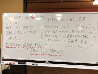 明日の予定をホワイトボードに旅行会社の方が書いていただきました。