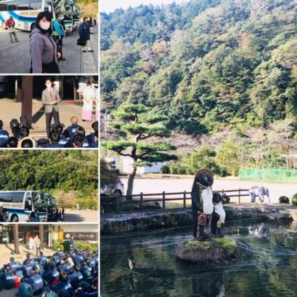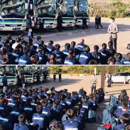 退所式でホテルの方に感謝を伝え、いざ長野県飯田市に向かいます。