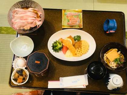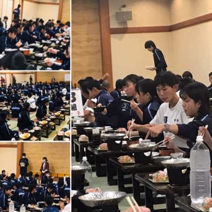 入館式で3年間の集大成である修学旅行と決意を発表し、夕食を頂きました。