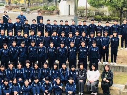 滋賀に向かう途中、飯田市運動公園により「全員写真」を撮影しました。